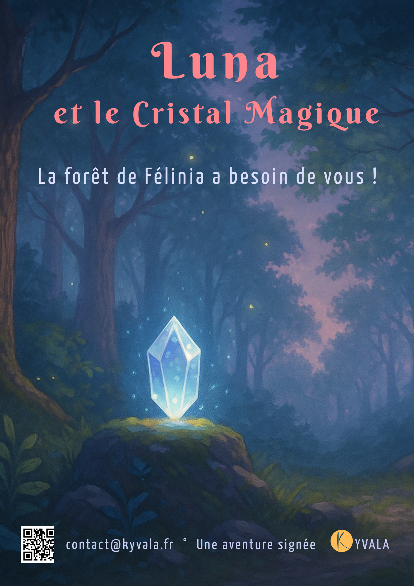 Luna & le Cristal magique est un jeu participatif conçu pour des enfants à partir de 7 ans (et un de leurs parents, s’ils veulent jouer avec eux).